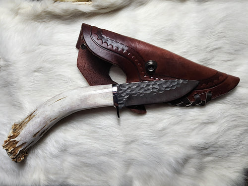 Deer Antler Hammered Stainless Steel Knife w/ Leather Sheath![]()  - Vendor