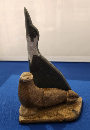 Soapstone Loon and Seal Statue