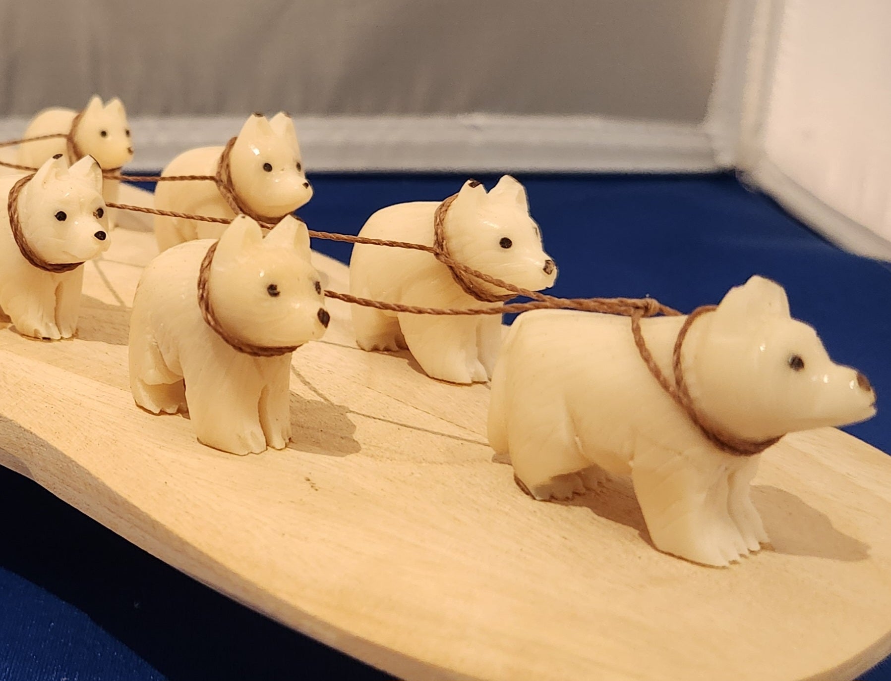 Hand carved dog sled team