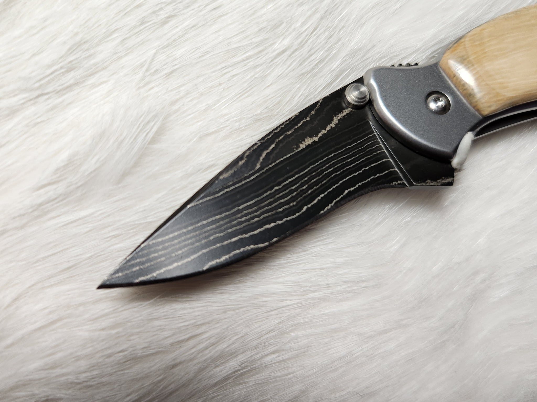 Kershaw Chive Knife with a Damascus Blade, featuring a Mammoth Tusk Handle